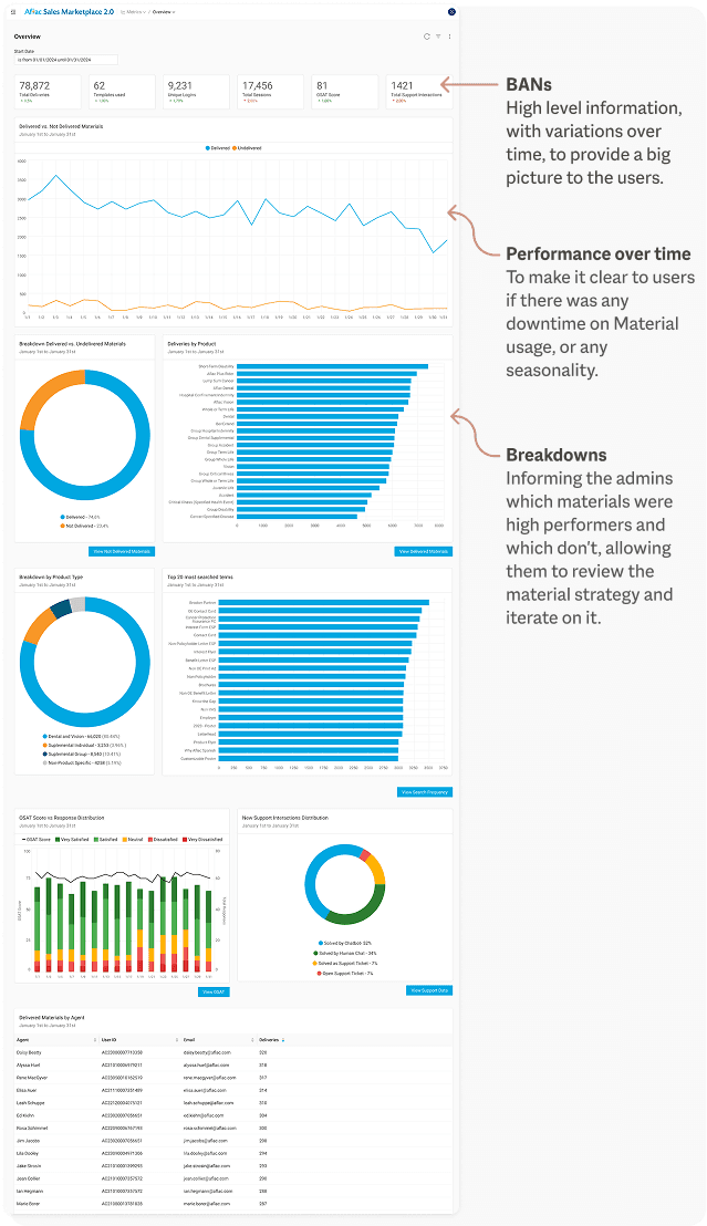 Users needed to be able to select different time frames, to refine their analysis. It would also be helpful to provide a qualitative breakdown on the data, so users better understand nuanced information.