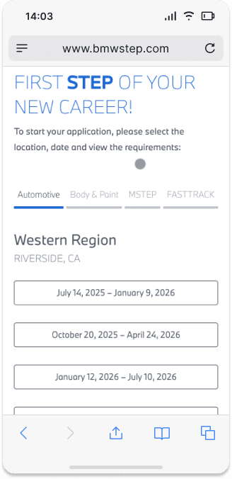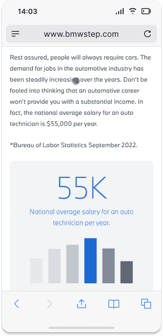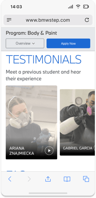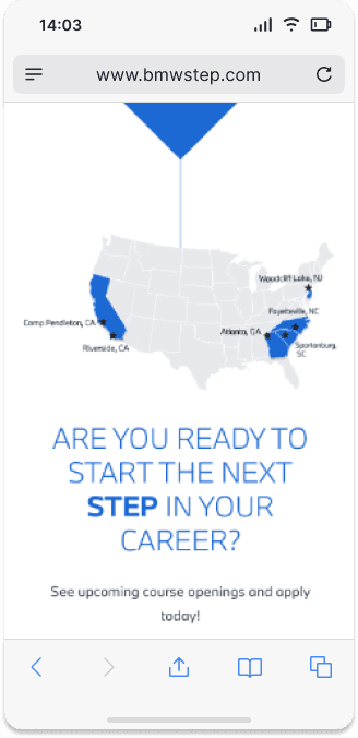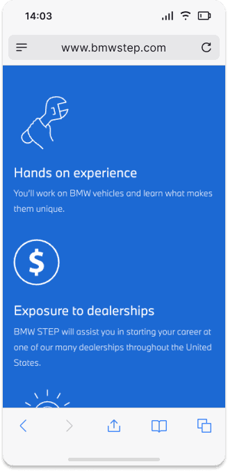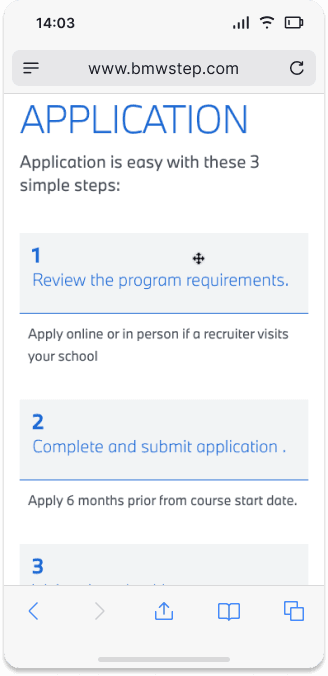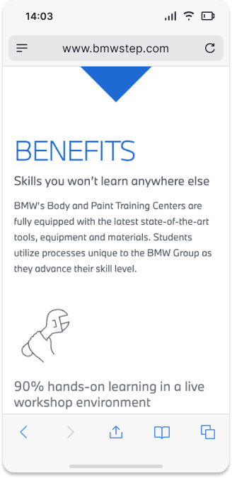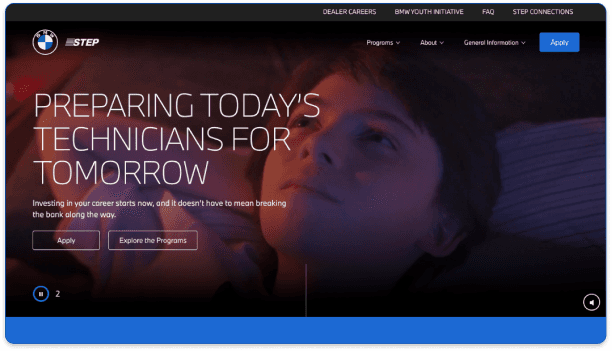 BMW STEP is amongst the most extensive technician training schemes across North America. They are recognized for their practical methodology and thorough enhancement of technical skills. Yet, their official website seemed antiquated and overloaded with content, lacking a narrative to support its value proposition. As a result, the site faced increased bounce rates, diminished traffic, and reduced page duration.
