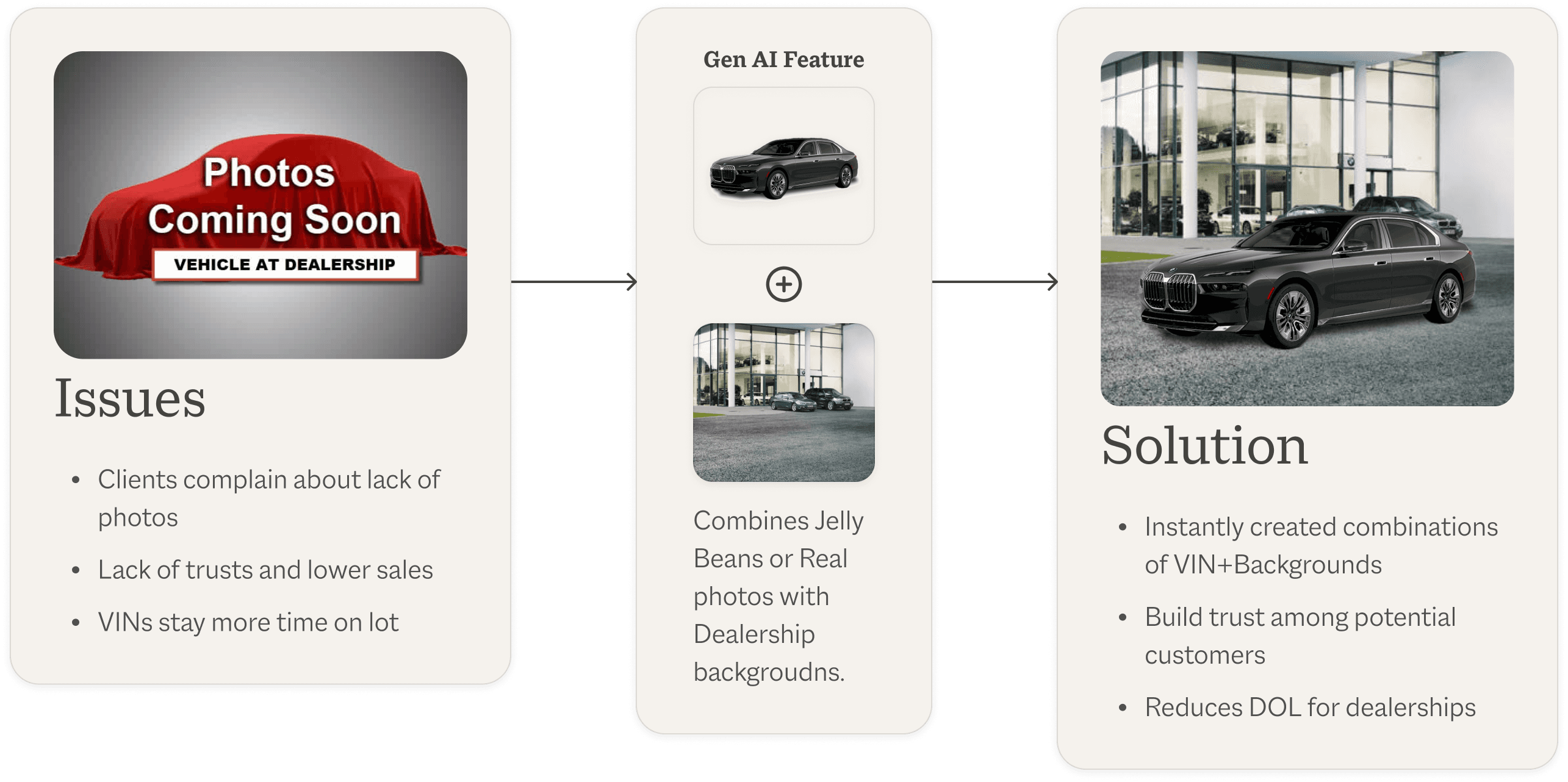 Online marketing depends heavily on product images, and the same holds true for auto dealerships, whether selling new or used cars. Poor or missing images often lead to customer distrust or disinterest. The longer a car sits on the lot, the more it costs the dealer and reduces profit. Inventory GenAI helps solve this by generating AI-powered car backgrounds to speed up sales. However, the tool lacked scalability and a user experience matching its value.