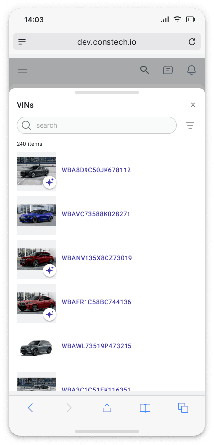 Clear visual VIN list & removable selection chips
